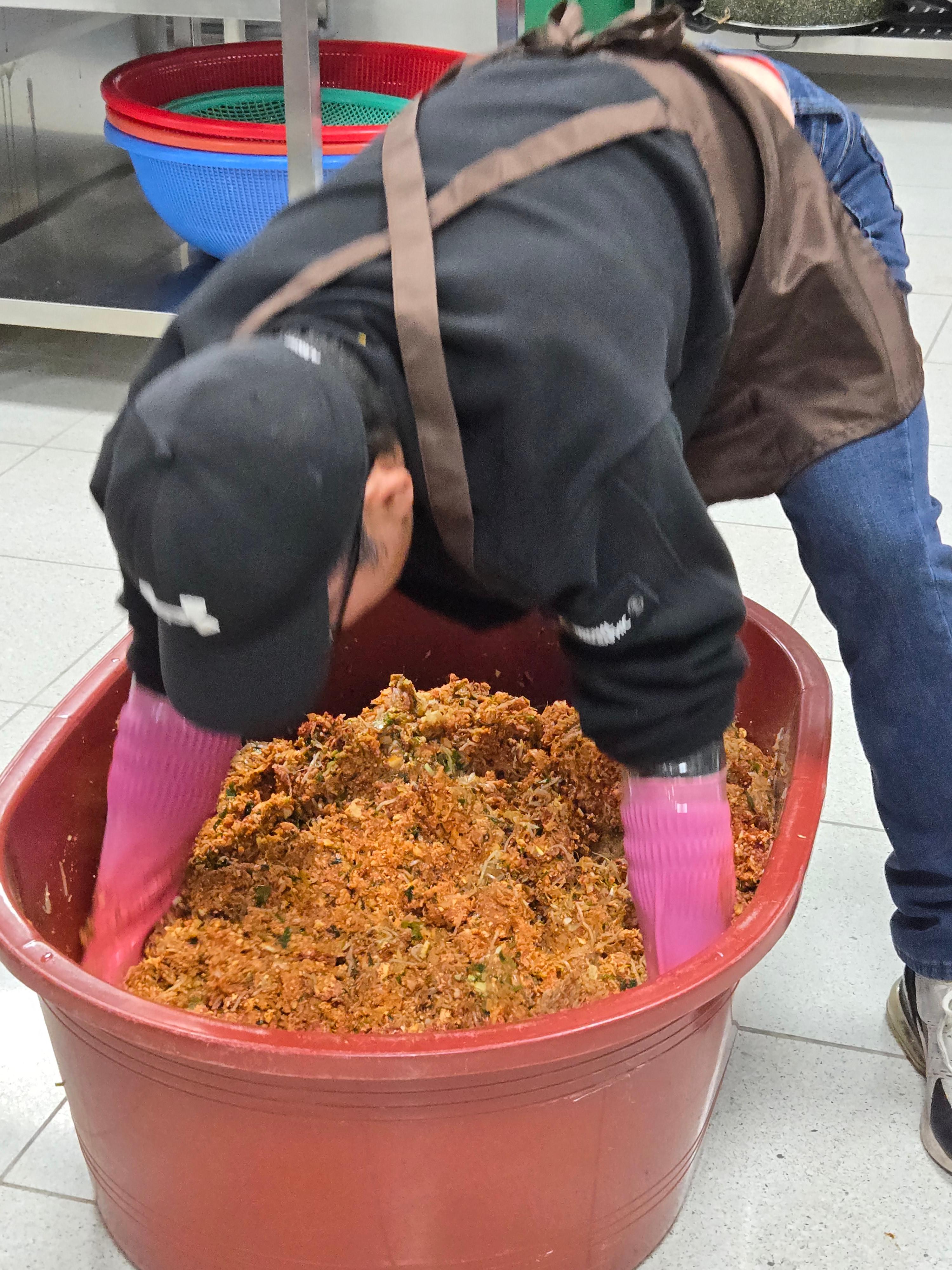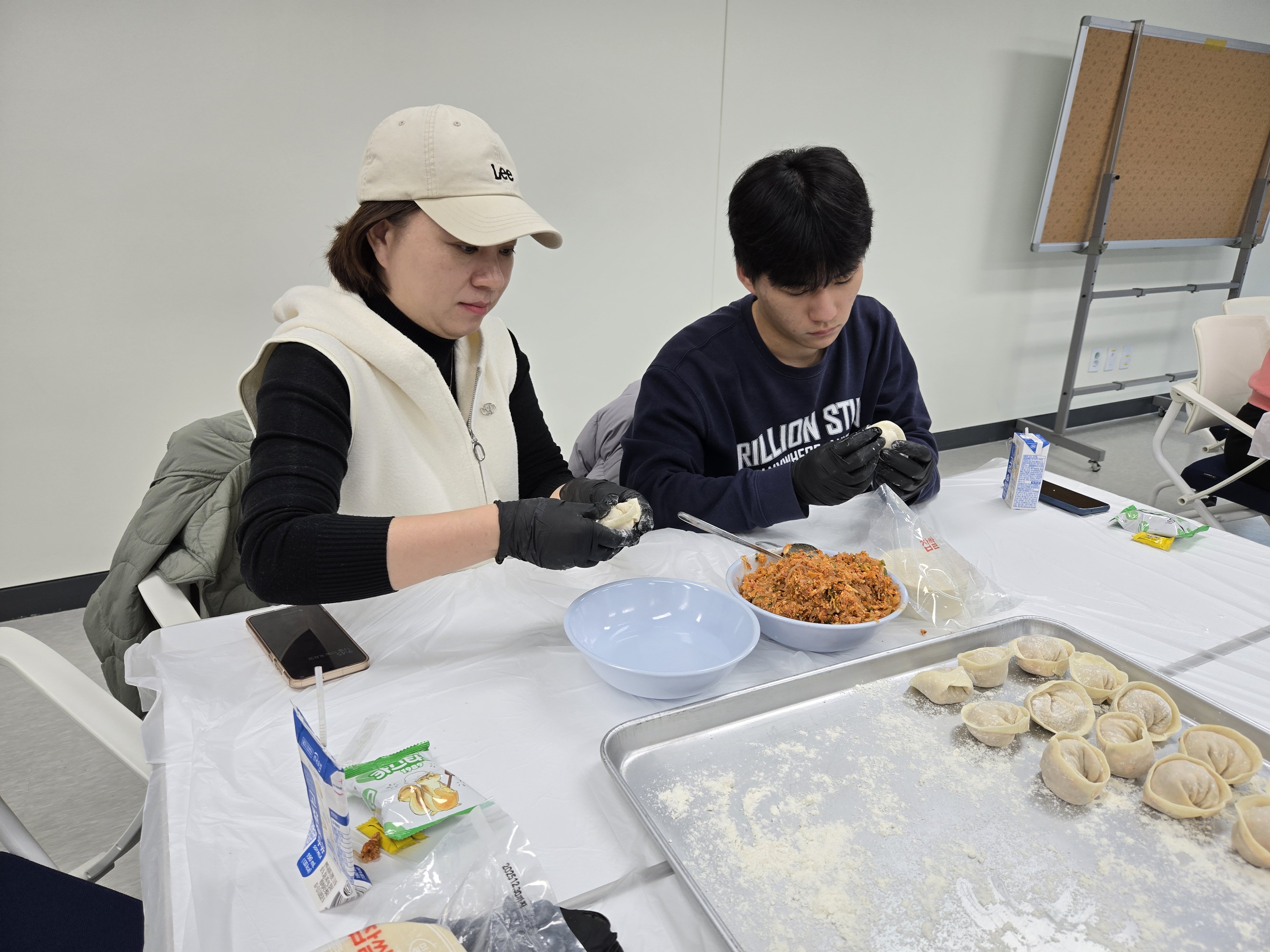 전날 시장을 보고 만두소에 들어갈 김치를 다지고 사전 작업을 미리 해놓은 덕에 당일 아침 일찍 만두소를 맛있게 완성하고 봉사단이 둘러앉아 이야기꽃을 피우며 만두를 빚었다.