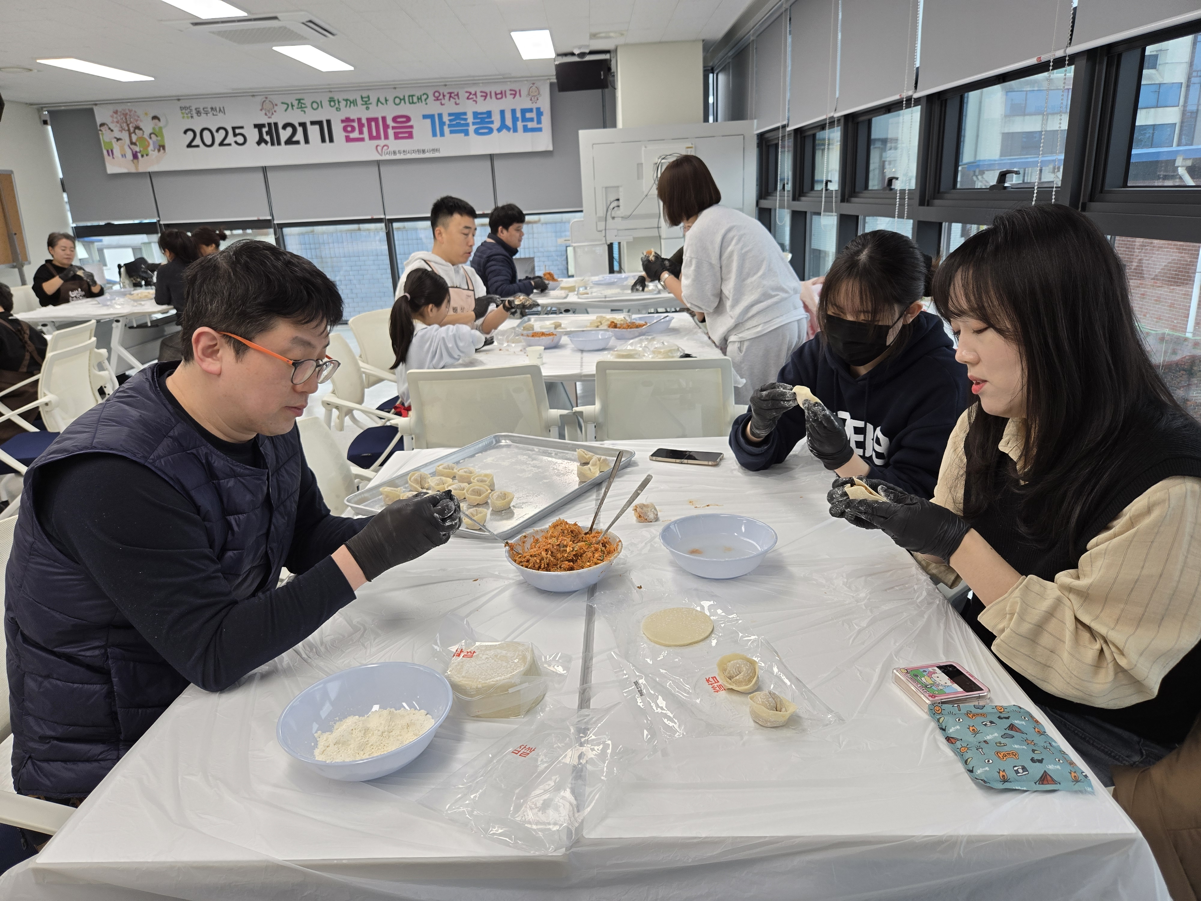 동두천시 자원봉사센터(이사장:박형덕)은 지난 12월 13일(토) 오전 9시 한마음가족봉사단 40명은 자원봉사센터 공유주방에서 만두 만들기를 실시했다.