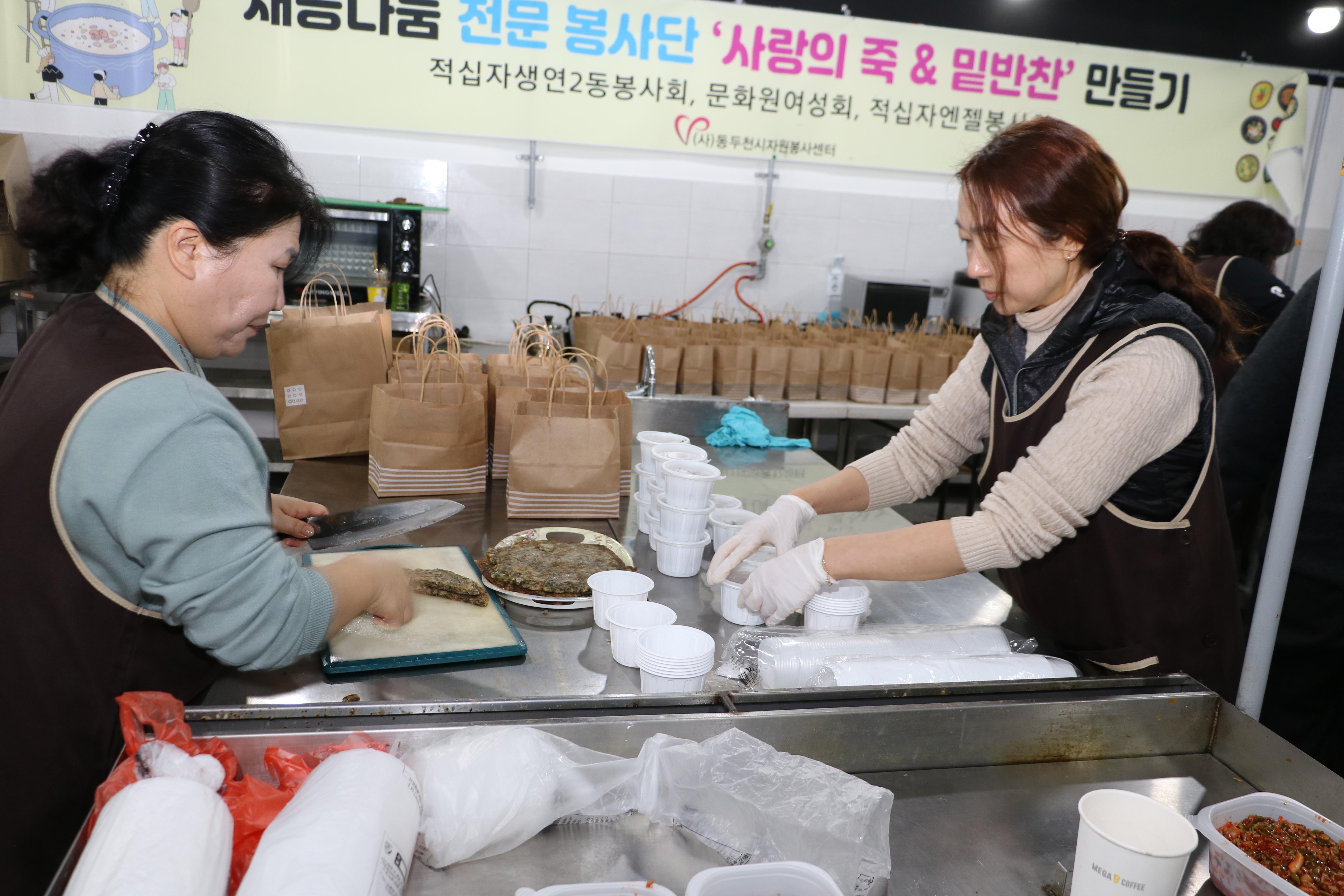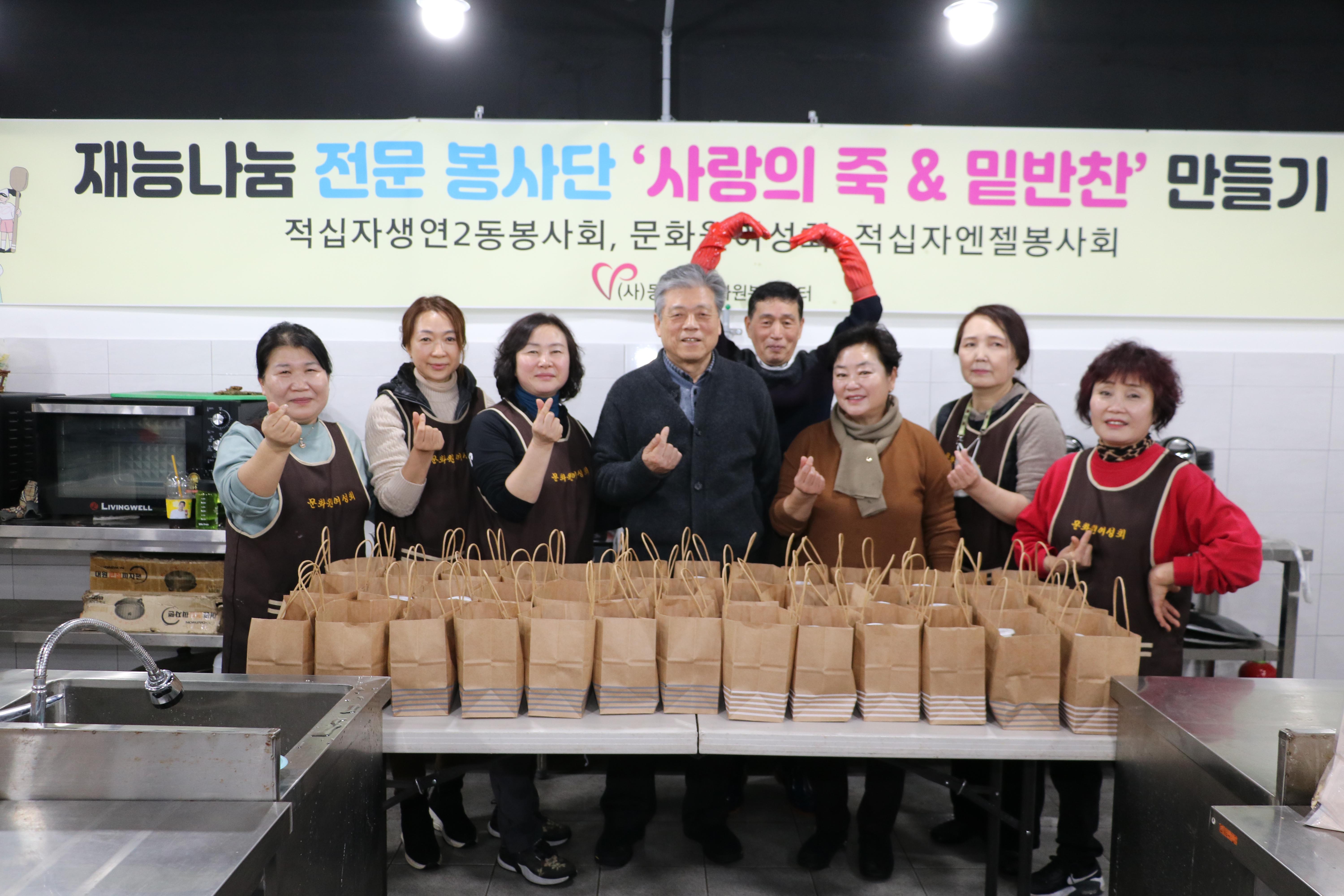 동두천시 자원봉사센터 문화원여성회(회장: 윤한옥)은 지난 1월 18일(목)오전 8시 ‘두드림 모두의 주방’ 에서 취약계층을 위한 ‘사랑의 영양죽&밑반찬 만들기’ 활동을 실시하고 회원들이 직접 50가구 배달에 나섰다.
