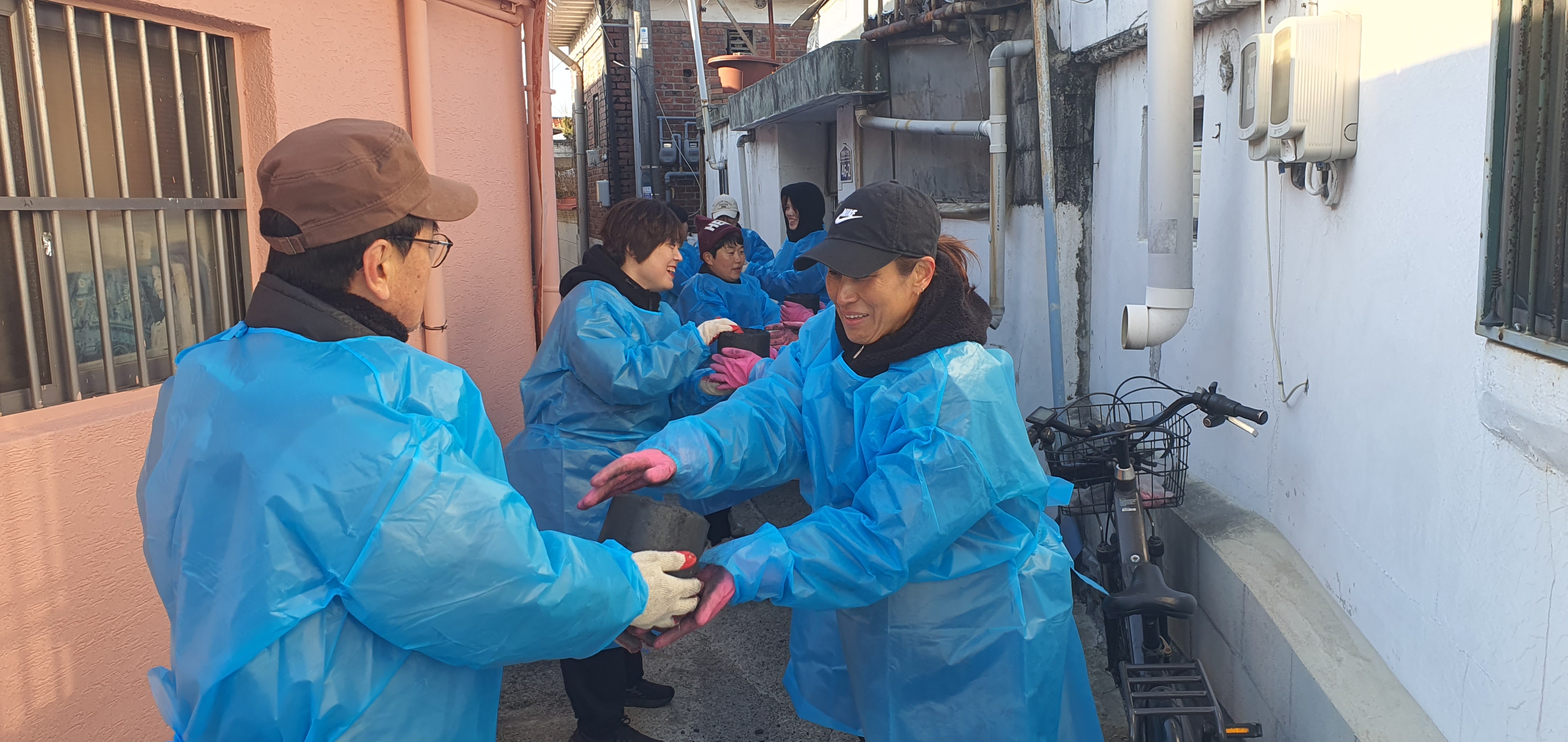 지게에 연탄 4장씩 메고 골목길을 누비고, 길게 인간띠를 이루어 손에서 손으로 연탄을 전달하며 서로의 온기를 나누는 시간이었다.